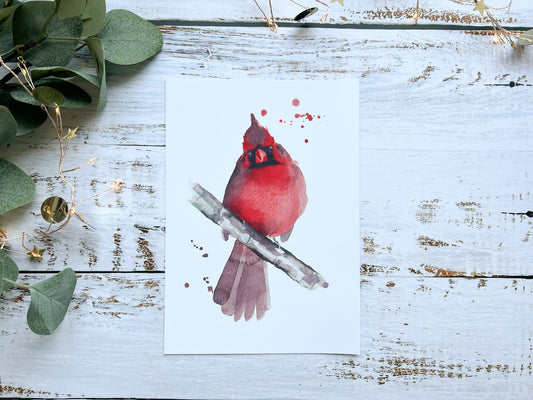 Cardinal bird watercolour print