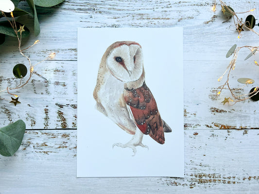 Barn owl watercolour print