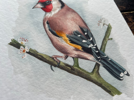 Goldfinch on blossom A4 print