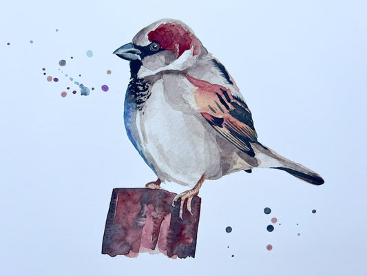 House sparrow on a branch print