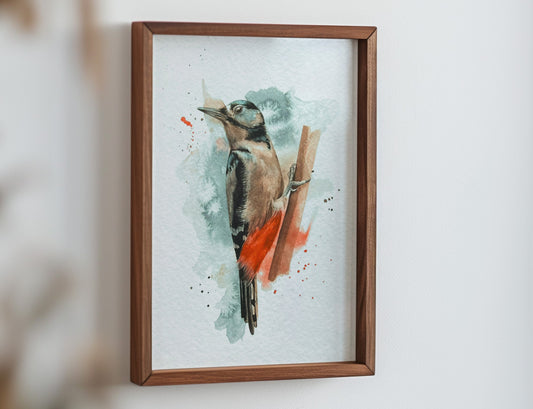 Great spotted woodpecker - expressive watercolour print