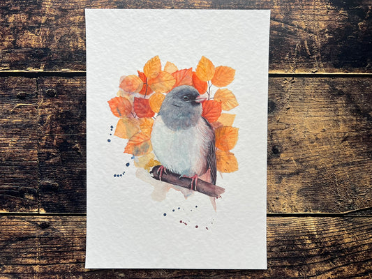 Dark eyed junco expressive watercolour print