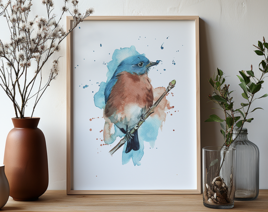 Eastern Bluebird expressive watercolour print