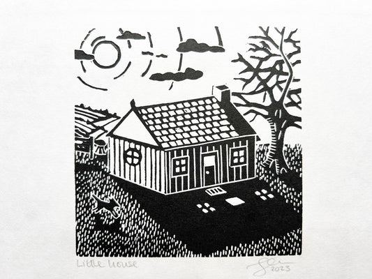 Little house lino print