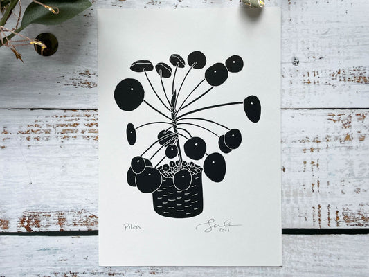 Pilea peperomioides lino print