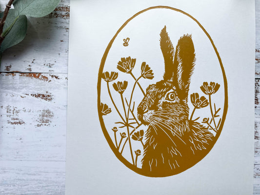 March Hare A4 lino print