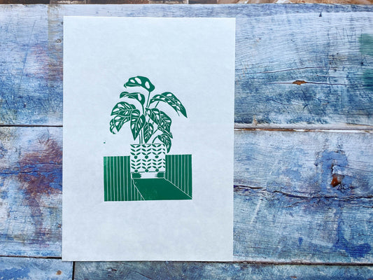 Monstera monkey lino print