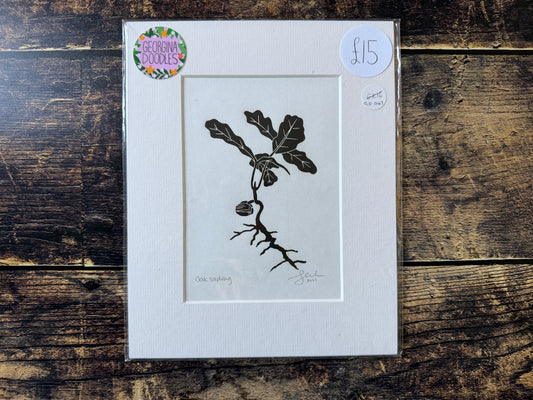 Oak tree sapling mini lino prints
