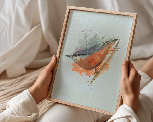 Nuthatch - expressive watercolour print