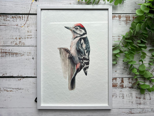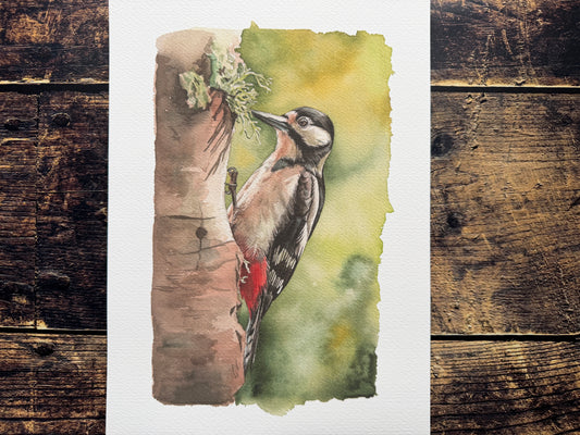 Woodpecker & Shadows A4 watercolour print